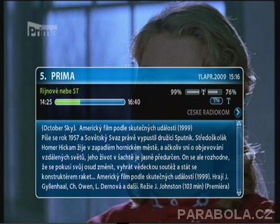 Obrázek menu přijímače Arion AT-2410VHD - informační lišta se základním EPG