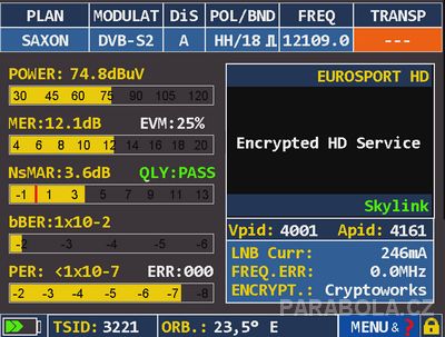 Nyní už přichází na řadu tolik diskutovaný TP 12109H s modulací 8PSK a protichybovou ochrannou - FEC 3/4.