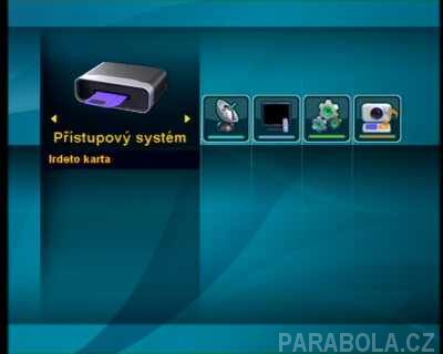 Tato funkce obsahuje jen jednu položku, která se jmenuje Irdeto karta a zobrazuje údaje o vložené Irdeto kartě.