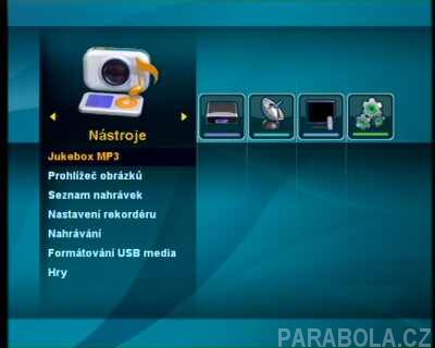 V podstatě se jedná o obsluhu externího disku, jeho formátování a přehrávání multimédií a vlastních nahrávek. Přijímač zvládá přehrávat a zobrazovat soubory MP3, JPG, AVI, DivX/XVid, MKV a další. Hodně jsem jich zkusil, přehrávání bylo bez problémů.