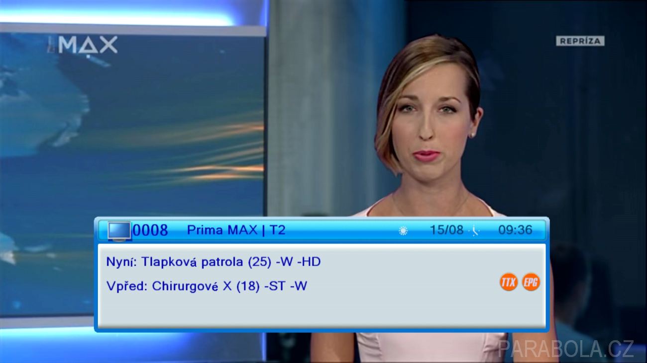 Informační lišta obsahuje informace o běžícím pořadu (u obou set top boxů) a následném pořadu (pouze u modelu TS6820 Twin). Podrobné informace o pořadu nejsou nikterak oříznuty. České znaky se zobrazovaly v pořádku. Pomocí EPG lze snadno naprogramovat události pro nahrávání.