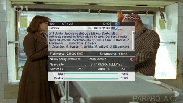 Síla a kvalita signálu je zobrazována proužkovým ukazatelem a v procentech. Nicméně podle těchto „teploměrů“ nic nenastavíte, protože ukazují stále kvalitu signálu 100%, i u příjmu signálově slabých multiplexů.
