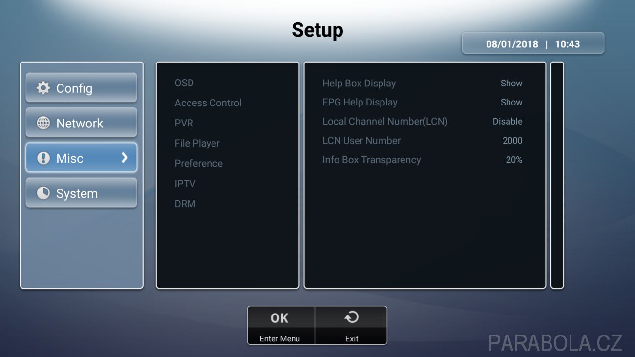 - Operační systémy: Enigma 2, Android 7.1- Combo tuner (DVB-S2 / S, DVB-T2 / T / C)