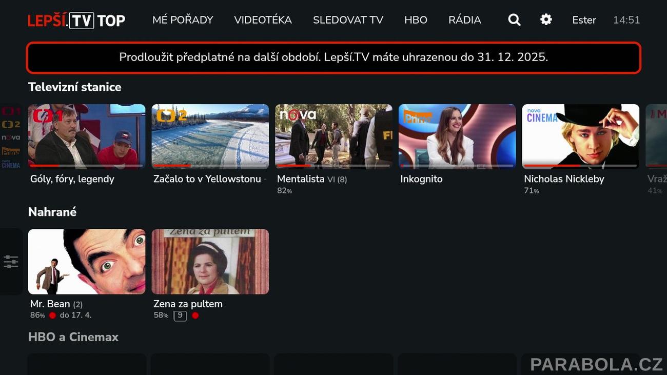 Osobně mám se službou Lepší.TV velmi dobré zkušenosti. Perfektní obraz, žádné trhání obrazu, přehledná a jednoduchá aplikace pro Android TV, kterou mám nainstalovanou na multimediálním přehrávači Homatics Box R 4K plus. Multimediální přehrávače značky Homatics na webu parabola.cz pravidelně představuji.