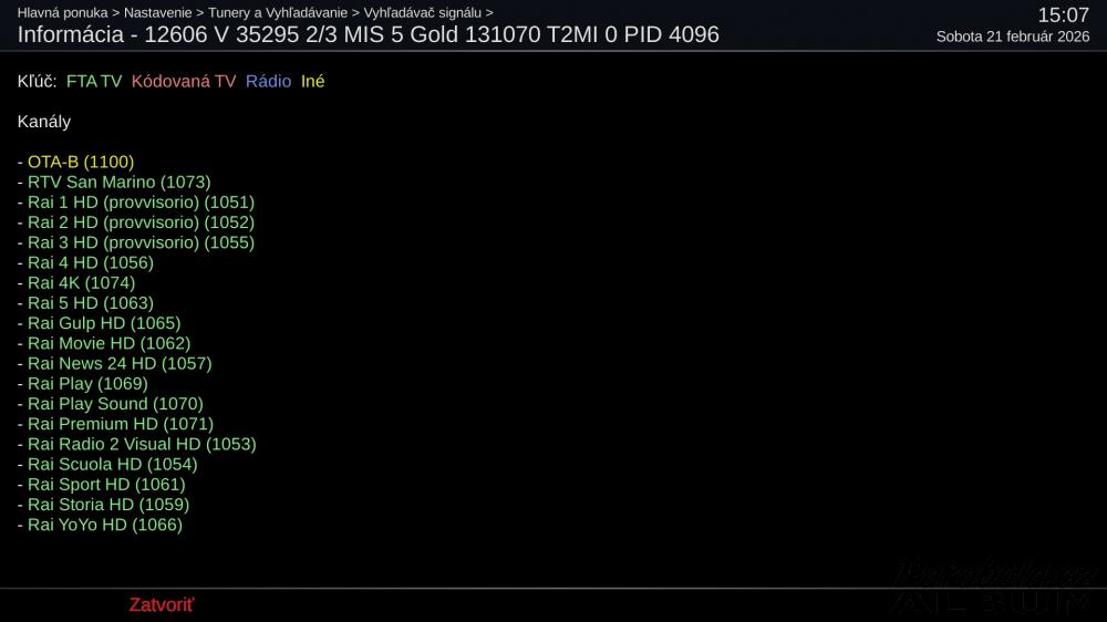 RE: rai 4k 5w t2-miNa Octagon SF8008 mi to naladilo a jede. Program totožný s RAI 1. |